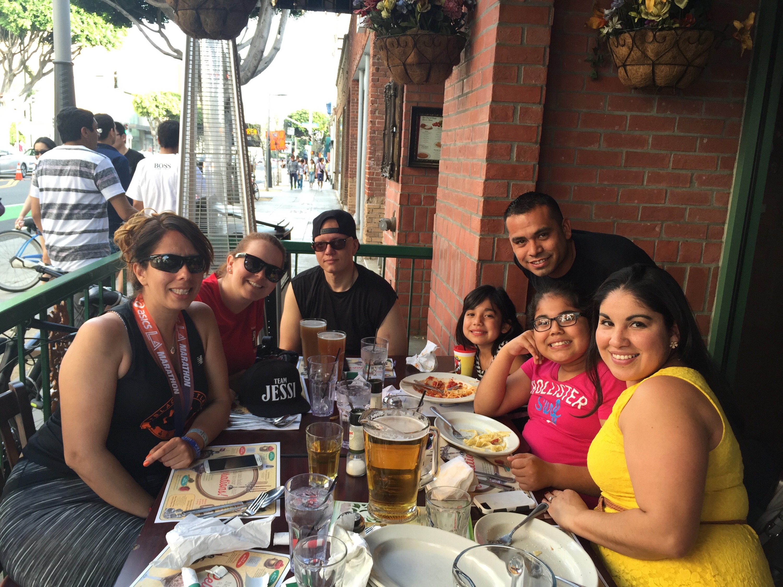 We finally made our way to the finish and found our girl, Jessi! She finished running her very first full marathon! I don’t think our small family of runners could have been any more proud! To celebrate, we parked our bikes at Buca Di Beppo and had pasta, pizza, and beer!